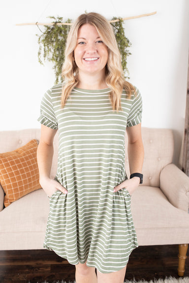 This classic & comfy dress is just what you are needing in your closet. It features short sleeves, a super soft fabric, a round neckline, A-li...
