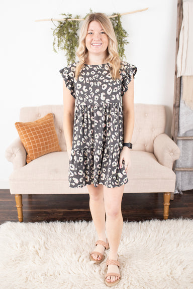 Animal Print Babydoll Tiered Dress - Black/Peach