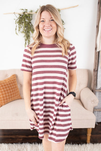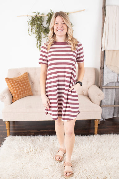 View full detailsThis classic & comfy dress is just what you are needing in your closet. It features short sleeves, a super soft fabric, a round neckline, A-li...