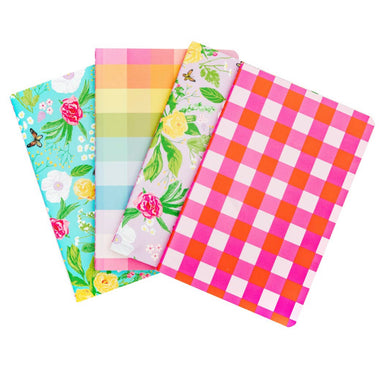 Size: 4" x 6" 40 pages per notebook Lined pages Sets come with 4 notebooks, one of each design shown Shrink-wrap packaging