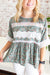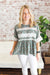 Floral round neck short sleeve top featuring eyelet detail at bust and sleeves. Keyhole button closure at back. Unlined. Woven. Semi-sheer. Lightweight.