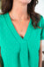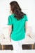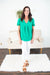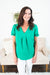 A SOLID SWISS DOT TOP FEATURING A V NECKLINE, CURVED HEM, SHORT RUFFLE SLEEVE, AND RELAXED FIT.