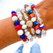 Our stack collections will come with 5 separate bracelets to create a unique stack. All bracelets are one size fits all. Each bracelet is made of the finest glass beads, hematite, and crystal beads to create longevity and a beautiful sparkle.